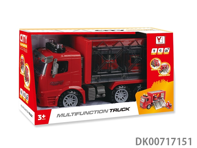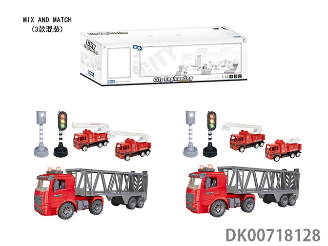 惯性消防拖头车拼盒装(带灯光音乐)包7粒AG13电池