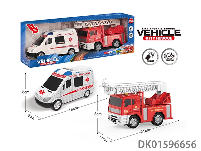 合金越野双惯性消防车 (拯救车+消防车)6只/盒