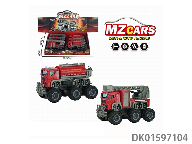 合金越野双惯性消防拖车 (洒水车+云梯车)6只/盒