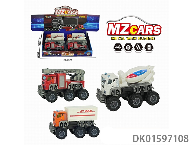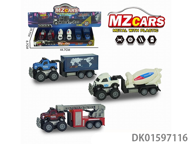 合金越野双惯性城市拖车 (滚筒车+云梯车+货柜车)6只/盒