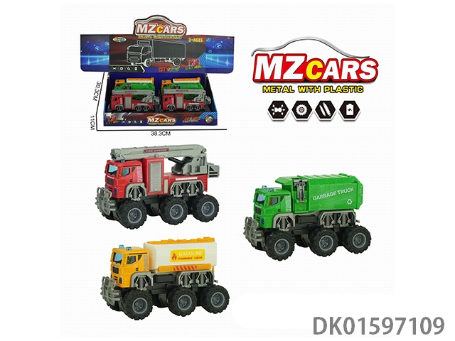 合金城市越野双惯性车 (油罐车+环卫车+拯救车+垃圾桶)6只/盒