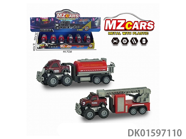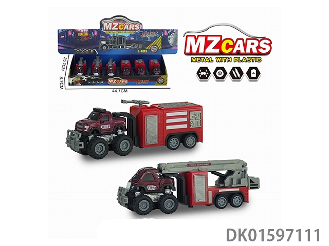 合金越野双惯性消防拖车 (消防车+拯救车)6只/盒