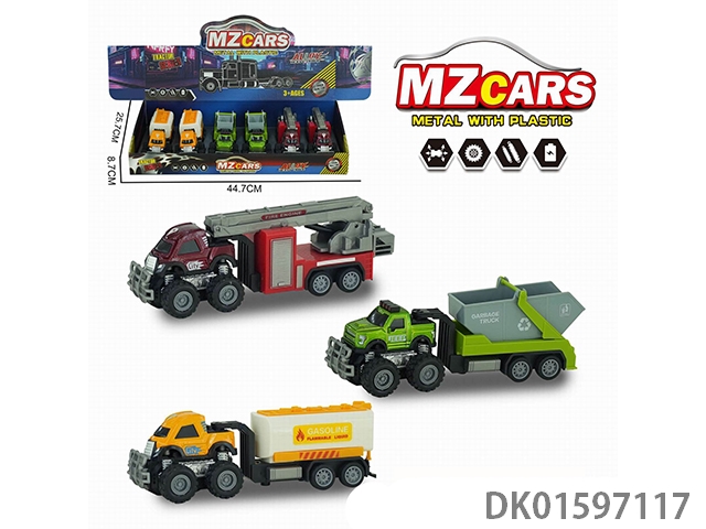 合金越野双惯性城市拖车 (油罐车+拯救车+自卸车)6只/盒