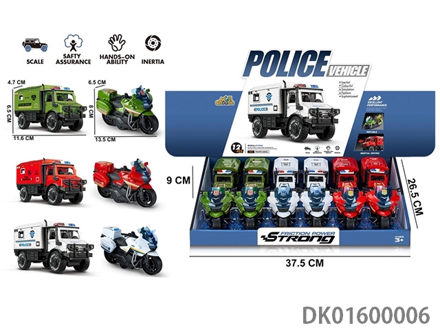 惯性警车惯性摩托车混装(警车/消防车/军事车混装惯性玩具惯性车惯性军事车惯性越野车惯性玩具惯性车模惯性警车惯性警察车)12只/盒