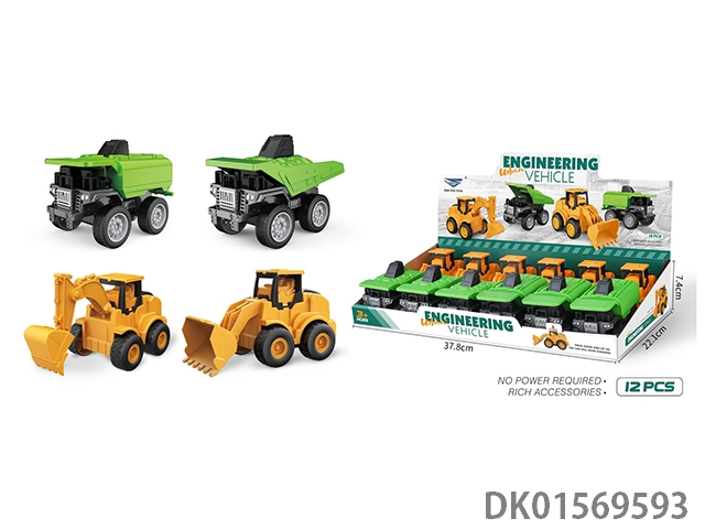 按压惯性挖土机+推土机+运输车+重型卡车4款混装(12PCS/盒)