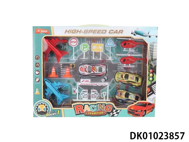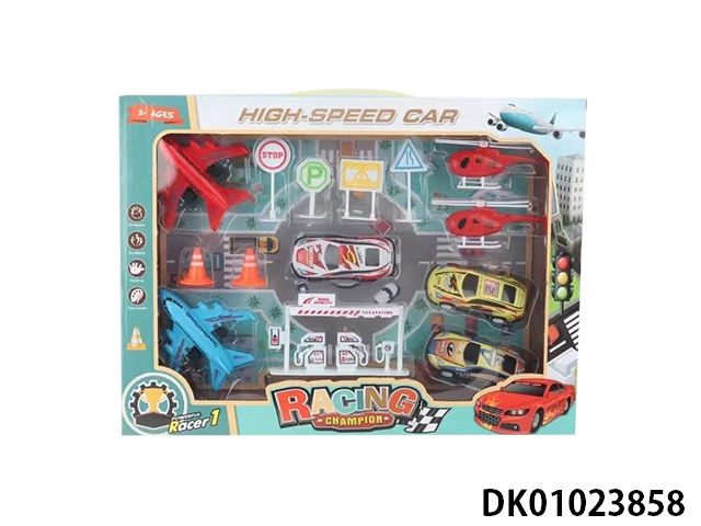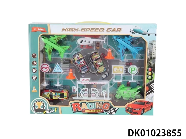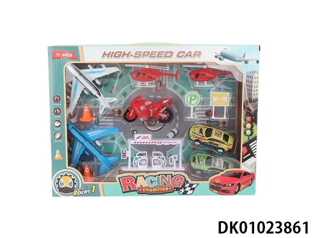 回力飞机回力铁皮车回力摩托车路标油站直升机套装