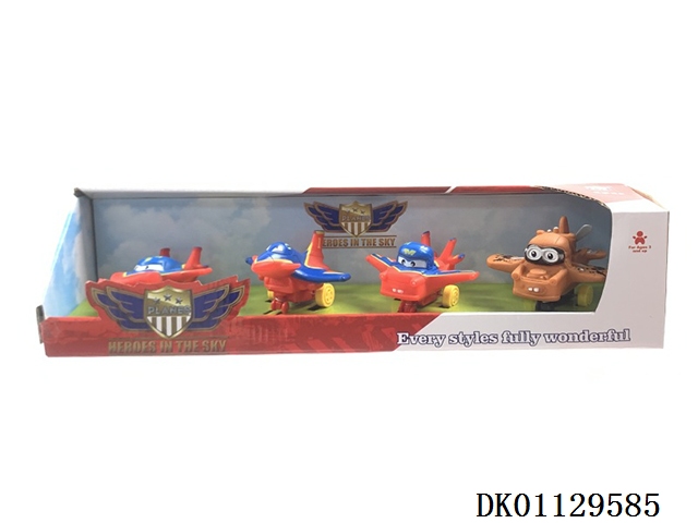 卡通飞机4款混装(可以多款飞机混装,所有飞机都可以装此款彩富)搪塑软胶=塑料飞机底和车轮+回力功能 4PCS/盒