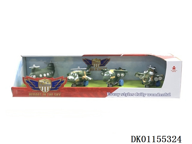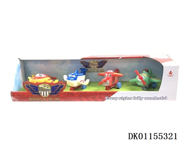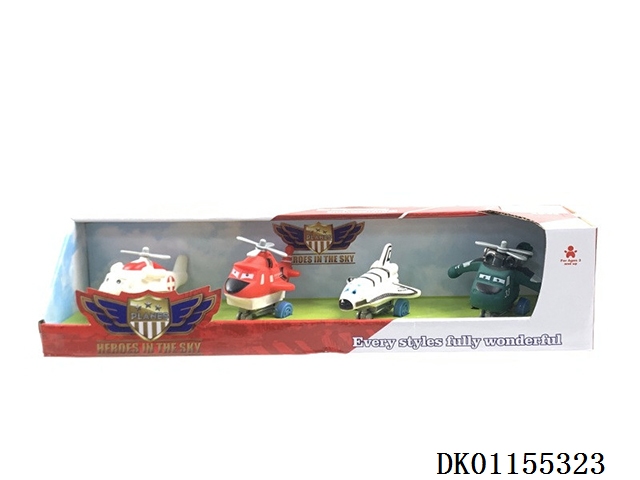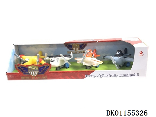 卡通飞机4装混装(可以多款飞机混装,所有飞机都可以装此款彩富)搪塑软胶+塑料飞机底和车轮+回力功能)4PCS/盒