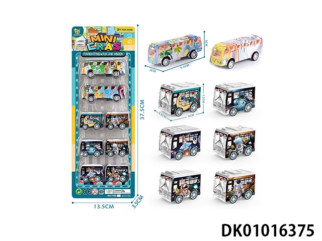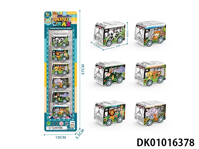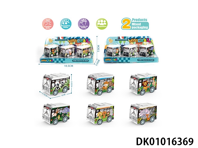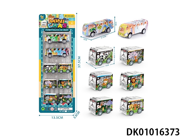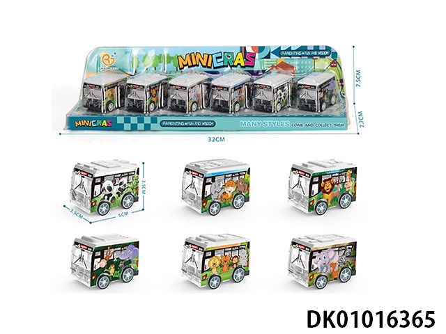 UV动物系列回力巴士车,6pcs/P罩