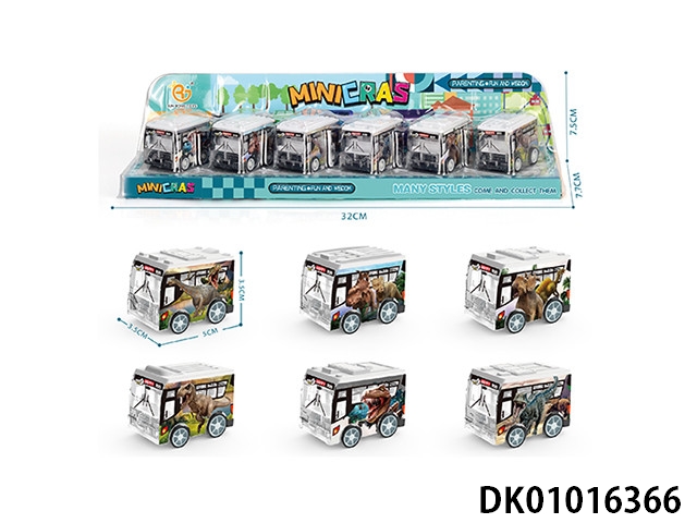 UV恐龙系列回力巴士车,6pcs/P罩