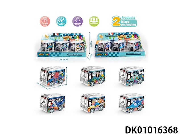 UV海底系列回力巴士车2款混装,3pcs/板