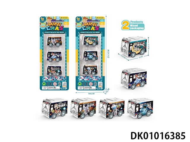 UV太空系列回力巴士车2款混装,3pcs/板