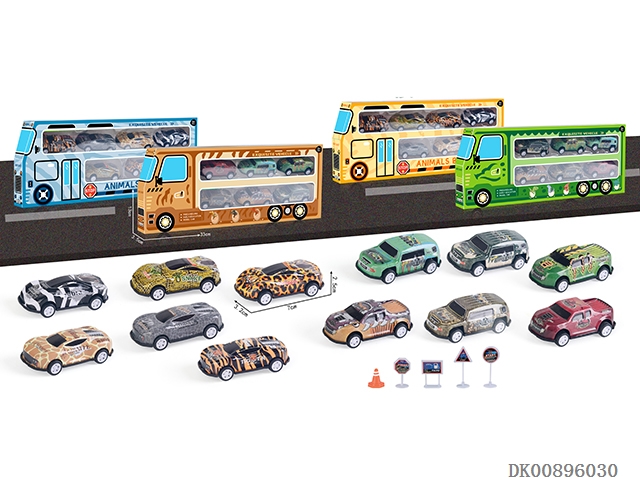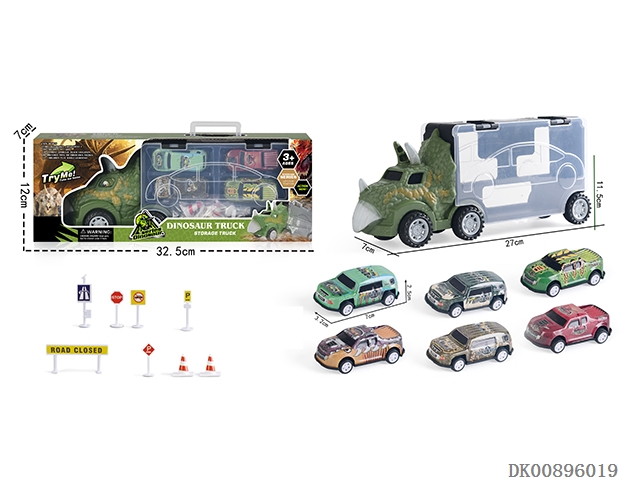 手提收纳货柜车(4回力恐龙金属车+8路障)