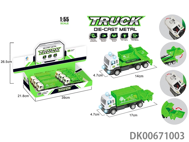 1:55开门灯光音乐合金回力环卫车(2款混装)6pcs