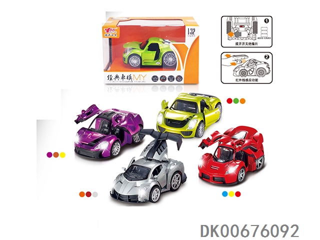 1:32Q版合金回力3开门车带灯光、音乐4款每款3色混装