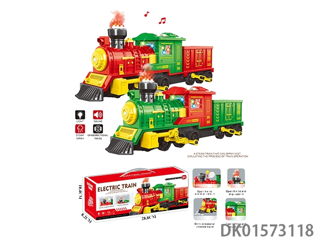 电动全塑胶版智能灯光声音雾化冒烟复古轨道火车(车厢带灯)