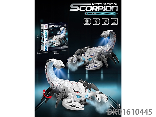 电动机械喷雾蝎子,电动万向,灯光音乐,钳子摆动,四肢摆动,带喷雾功能,内附喷雾水瓶一个(喷雾款)