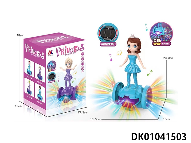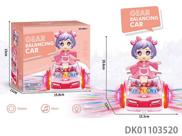 电动透明齿轮平衡车坐围裙女孩(带灯光和音乐)