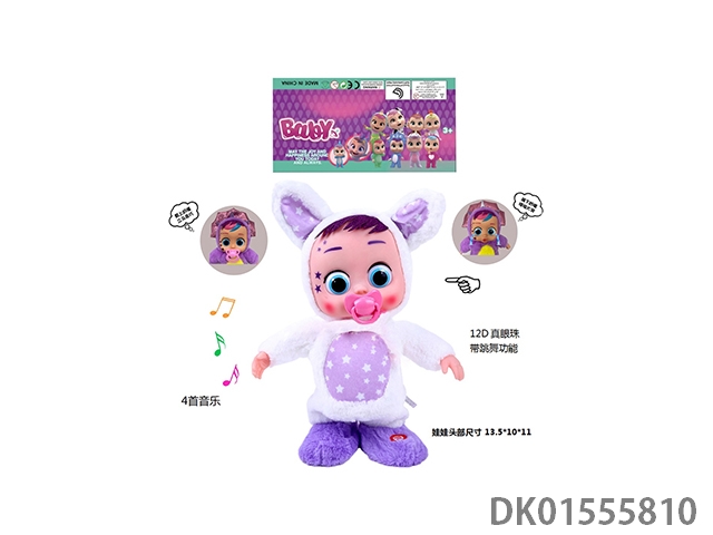 22寸注塑实身电动走路12D真眼珠毛绒白兔哭泣宝宝带奶嘴感应,功能描述(会哭,会唱4首歌,会跳舞,会走路)不包电