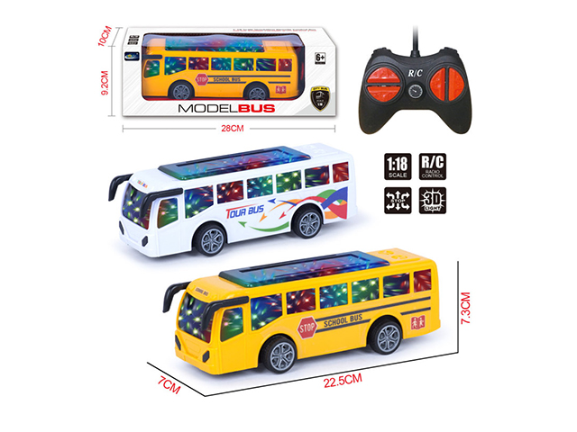 1:16灯光巴士5通遥控车2.4G带灯光/音乐/1键演示红/蓝包电