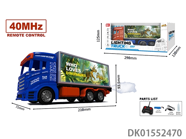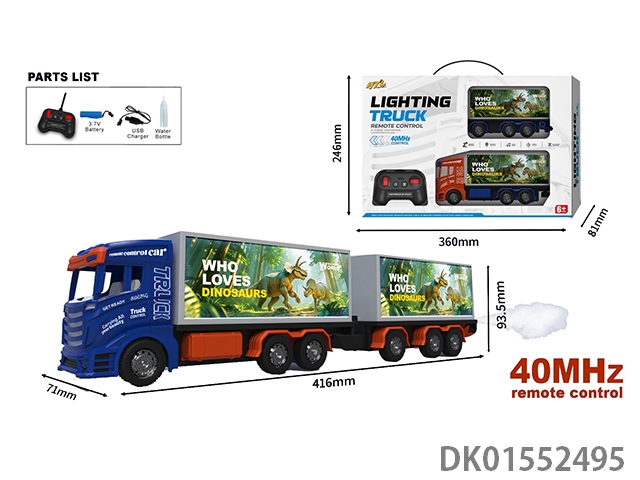 6通恐龙遥控货柜车带灯光,喷雾(3.7V电池.USB充电线)