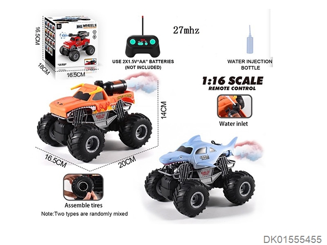 27MHZ 1:16五通带喷雾DIY轮公牛/鲨鱼混装喷雾车(不包电)