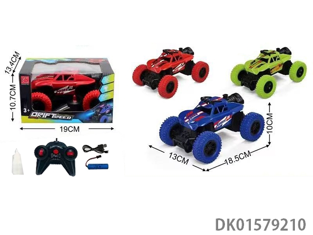 2.4GHZ无线遥控特技双面车,带炫彩灯光+音效+喷雾+大特技轮【电池容量加大1000毫安】