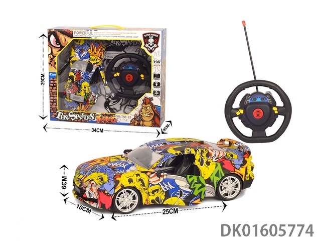 5通开门带灯动感方向盘涂鸦遥控车