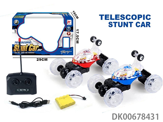 音乐 闪灯 特技开合翻斗车 前进 后退 左翻转 右翻转 停止,前轮360度旋转,后轮伸缩,可站立行走