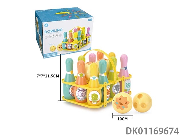 10瓶带卡槽 瓶身(动物+数字)配闪光圆球保龄球