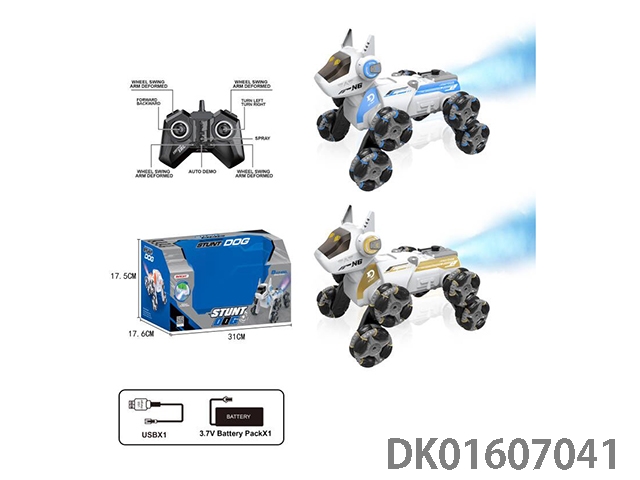 8轮特技遥控机器狗喷烟灯光