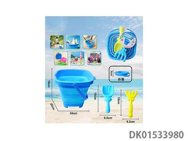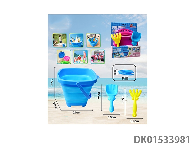 沙滩玩具3PCS沙滩折叠桶圆桶多种户外场景适用+沙铲+沙耙