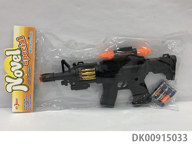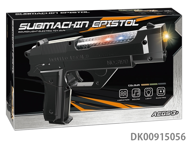 电动转轮灯光语音振动冲锋枪(黑色+3节电池)