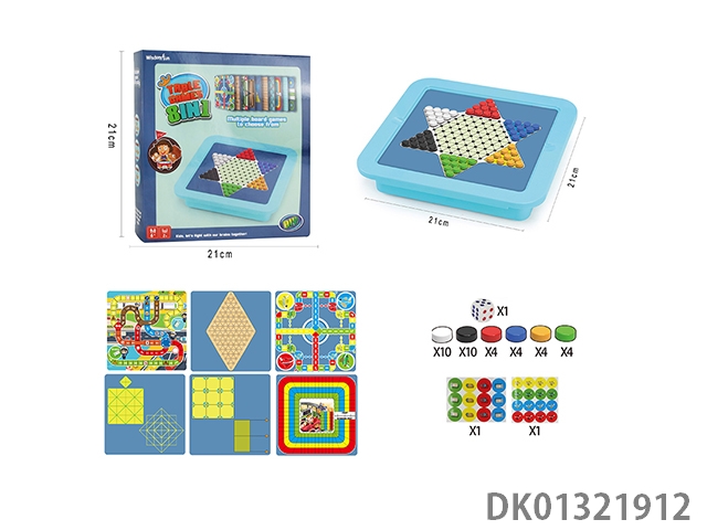 8合1收纳盒交通安全棋/赛车棋/和尚棋/打靶棋/会师游戏/飞行棋/方棋/三碗不过岗