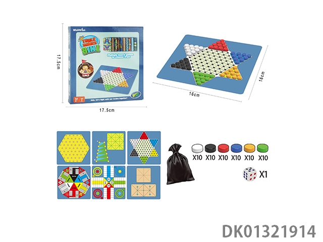 8合1收纳袋6角十字戏/十字飞行棋/对角棋/穿插组占棋/单身贵族/跳棋/越狱棋/连方棋