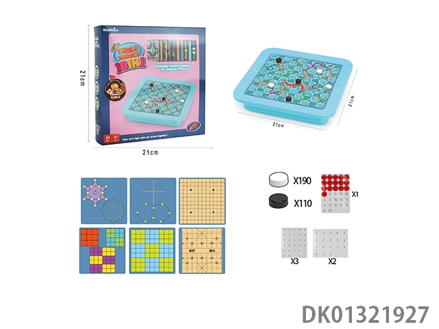8合1收纳盒行蛙跳棋/小人毛利舞/逼角棋/牛角棋/蛇棋/狐狸与鹅/西洋双陆棋/西洋棋