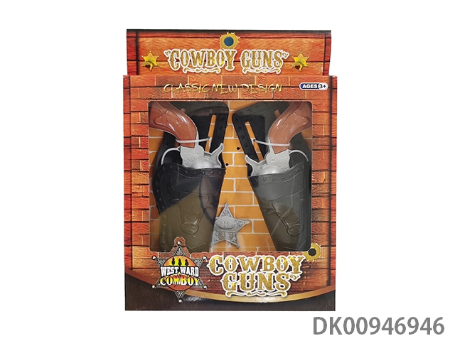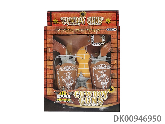 2支银色打响牛仔枪配塑料枪袋,警徽