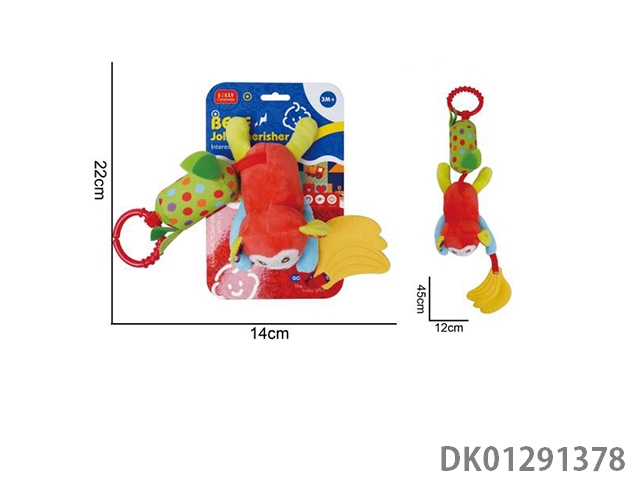 婴儿益智毛绒安抚玩具狐狸牙胶挂床风铃
