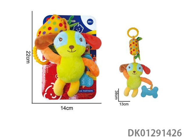 婴儿益智毛绒安抚玩具小狗挂床风铃
