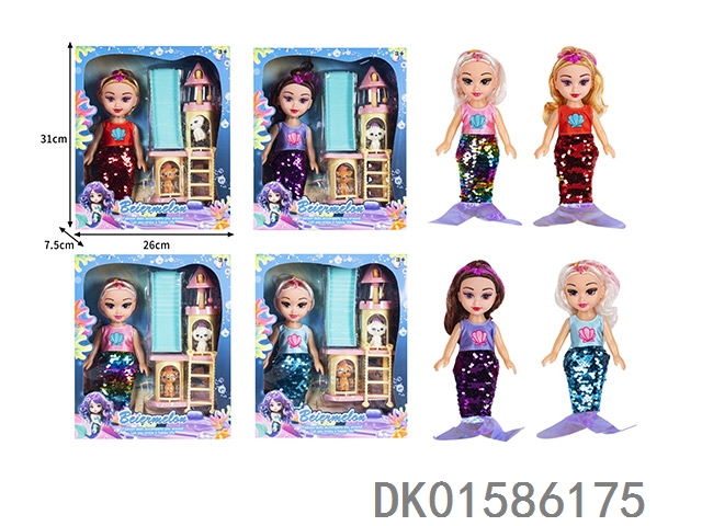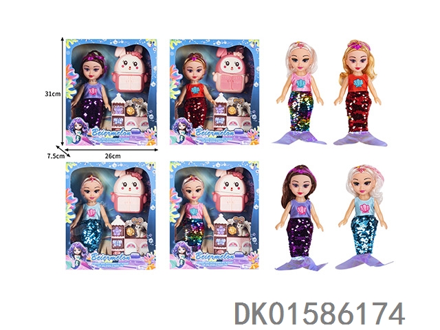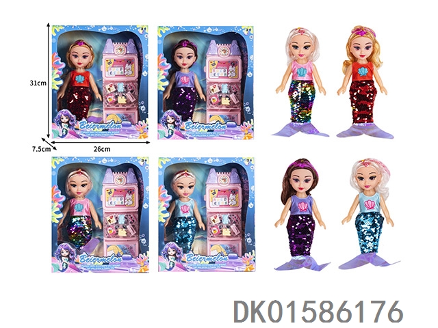 10寸空身时尚珠片美人鱼娃娃带配件(带音乐)