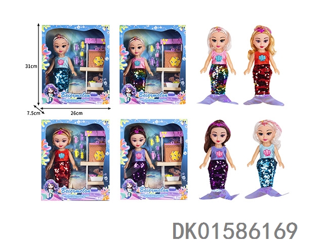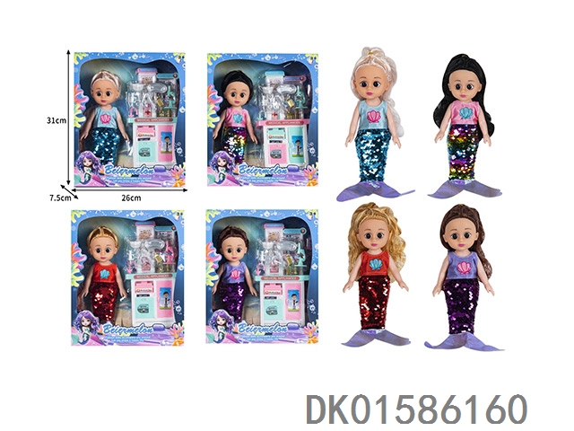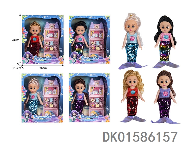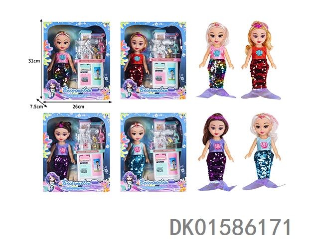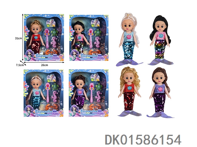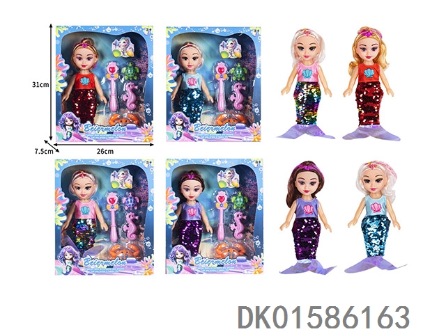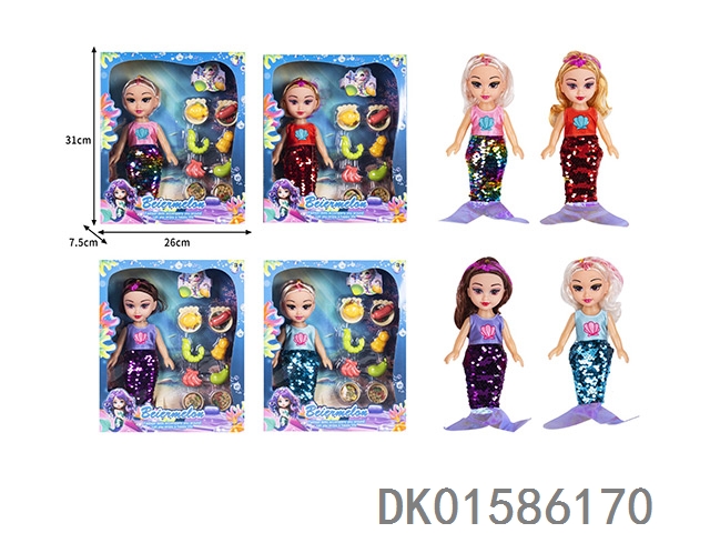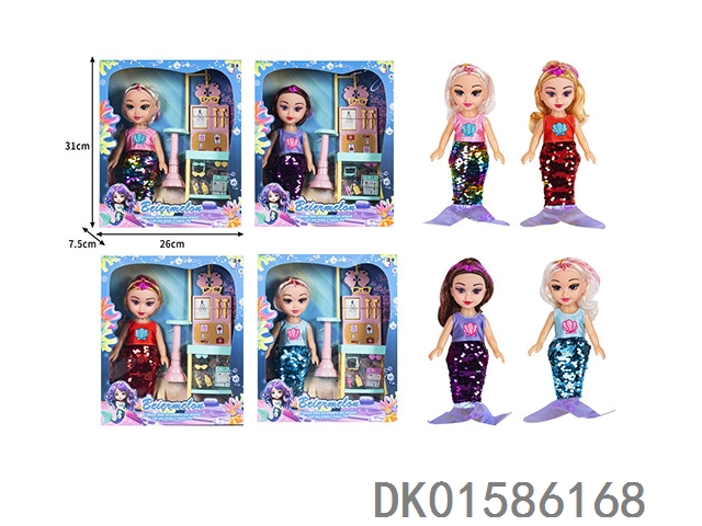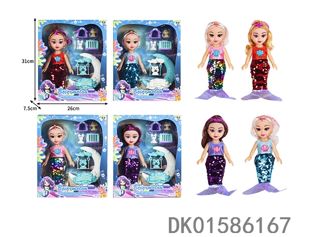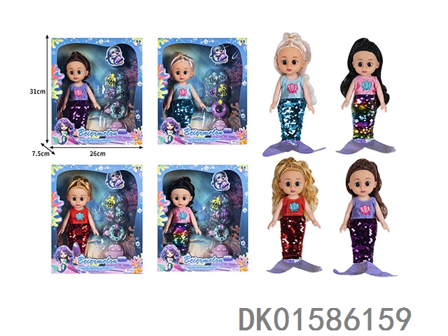 10寸空身时尚珠片美人鱼娃娃带配件(带音乐)