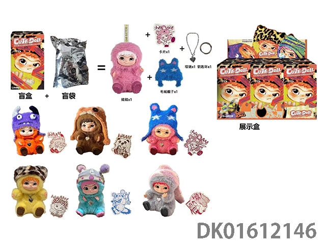 7寸高品质5关节毛绒搪胶5D眼珠wakuku哇库库带项链,钥匙扣,毛绒帽子(6款混装盲盒+盲袋6pcs)