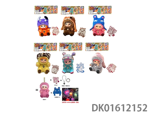7寸高品质5关节毛绒搪胶5D眼珠wakuku哇库库带项链,钥匙扣,毛绒帽子(6款混装 1pcs带七彩灯光主题音乐包电)