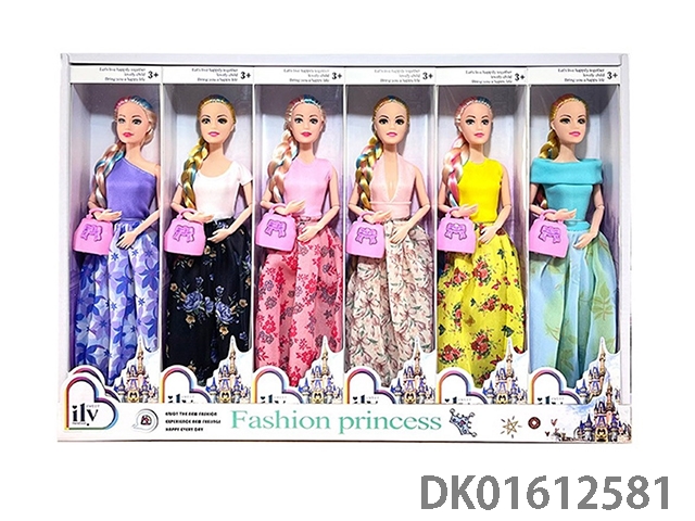 11.5寸实身9关节长辫子公主娃娃系列带手提包(6款混装 6PCS)