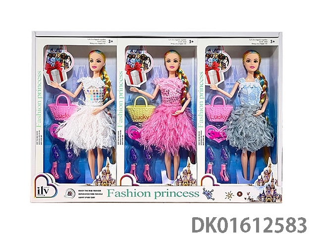 11.5寸实身9关节长辫子公主娃娃系列带吸塑配件(3款混装 3PCS)
