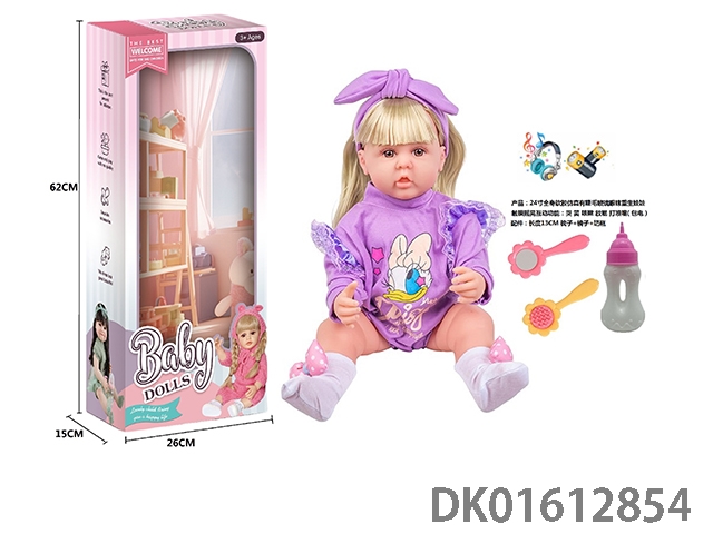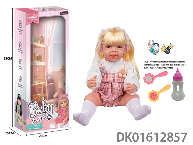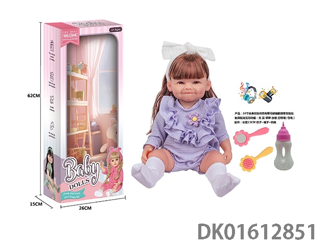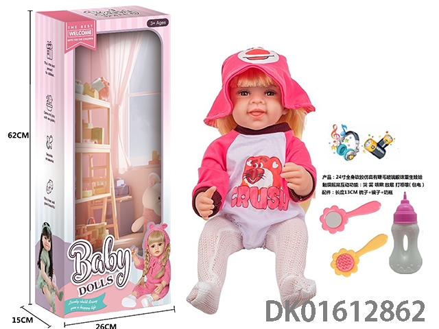 24寸全身软胶仿真有睫毛玻璃眼珠重生娃娃带梳子镜子奶瓶(触摸摇晃互动功能:哭 笑 咳嗽 放屁 打喷嚏)