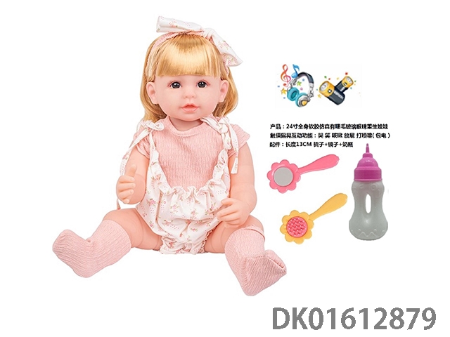 24寸全身软胶仿真有睫毛玻璃眼珠重生娃娃带梳子镜子奶瓶(触摸摇晃互动功能:哭 笑 咳嗽 放屁 打喷嚏)