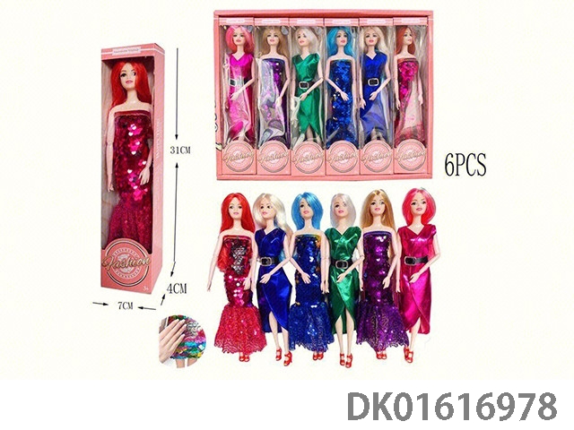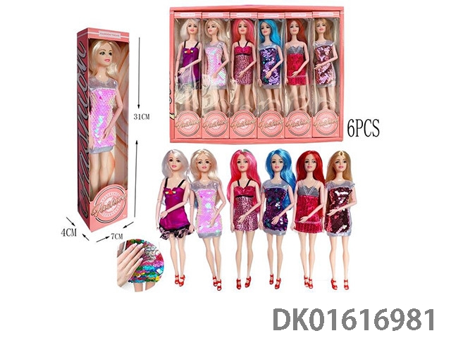 11.5寸6款混装多关节实身3款可拨动亮片时装芭比(6pcs)