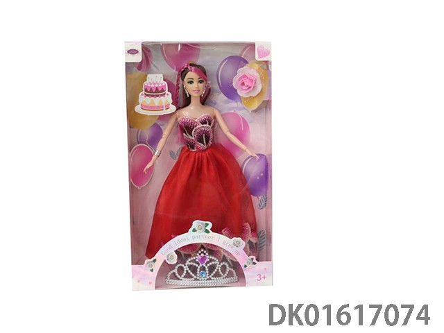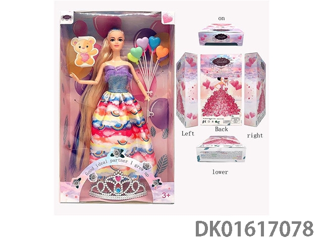 11.5寸9关节实身彩色长发时尚晚装芭比+8颗气球+儿童可戴皇冠