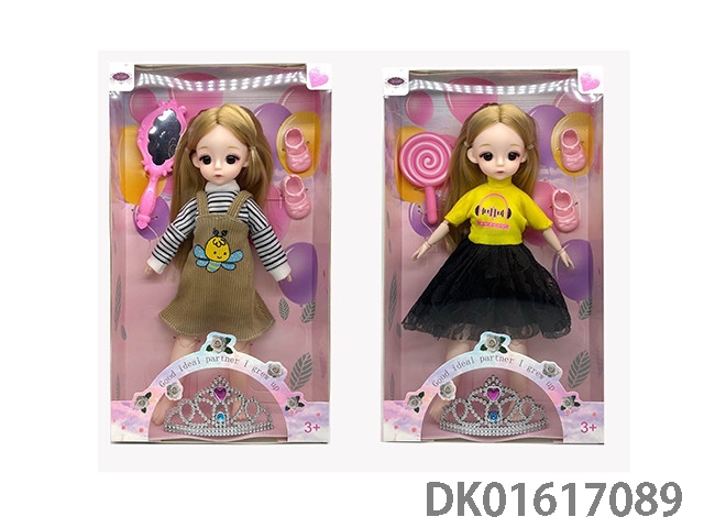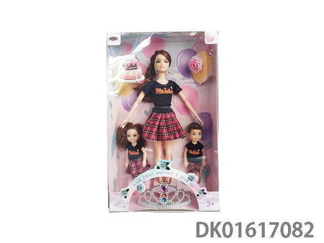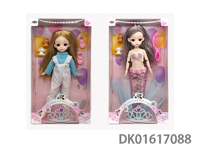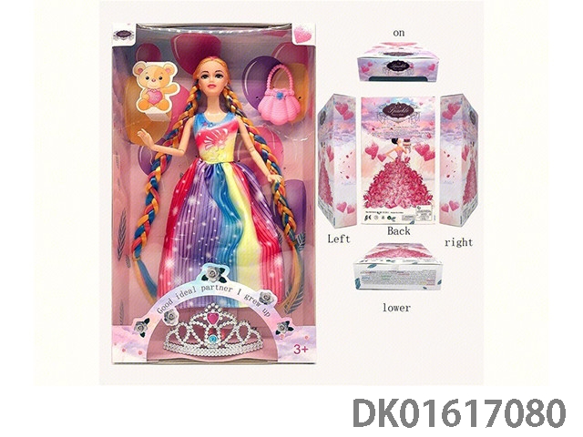 11.5寸9关节实身彩色双长辫时尚晚装芭比+手袋+儿童可戴皇冠